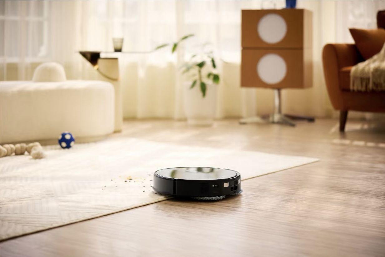 Er reinigt Hartböden, Fliesen und Teppiche mit einstellbarer Saugkraft und leiser App-Steuerung.