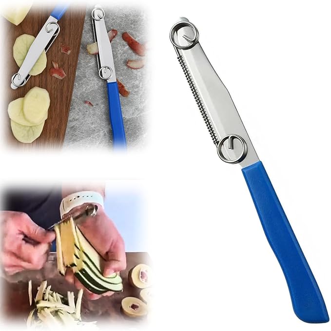 Unser federbelastetes Haushalts-Obstmesser aus Edelstahl verfügt über ein einzigartiges Federdesign, das eine schnelle Umwandlung zwischen einem Schälmesser und einem Aufschnittmesser ermöglicht, indem einfach die Position des Federclips angepasst wird.